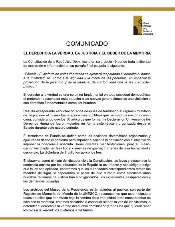 Comunicado del museo de la resistencia
